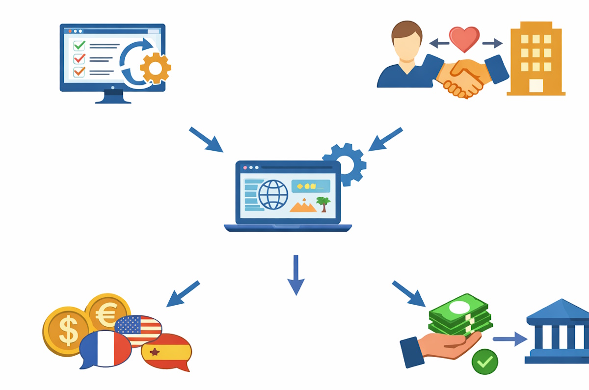 Sistema especializado para operadores que venden turismo nacional e internacional en Latinoamérica. Centraliza reservas, cotizaciones, clientes, prestadores, pagos y reportes en una sola plataforma, con soporte multi-moneda y multi-idioma (español, portugués e inglés). Diseñado para reemplazar Excel, WhatsApp y procesos dispersos por una operación profesional y estructurada.